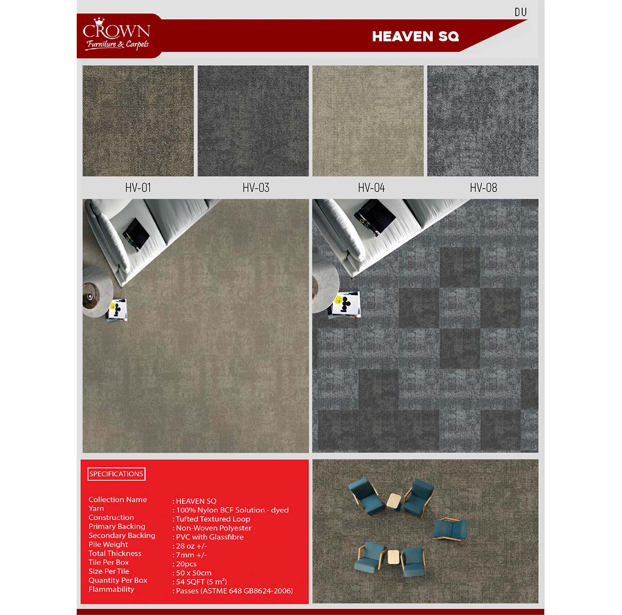 Designed for versatility and durability, Carpet Tile flooring offers a modular and hassle-free installation. The Heaven SQ Carpet Tiles, made from high-quality nylon and robust backing, provide vibrant aesthetics, stain resistance, and long-lasting resilience.