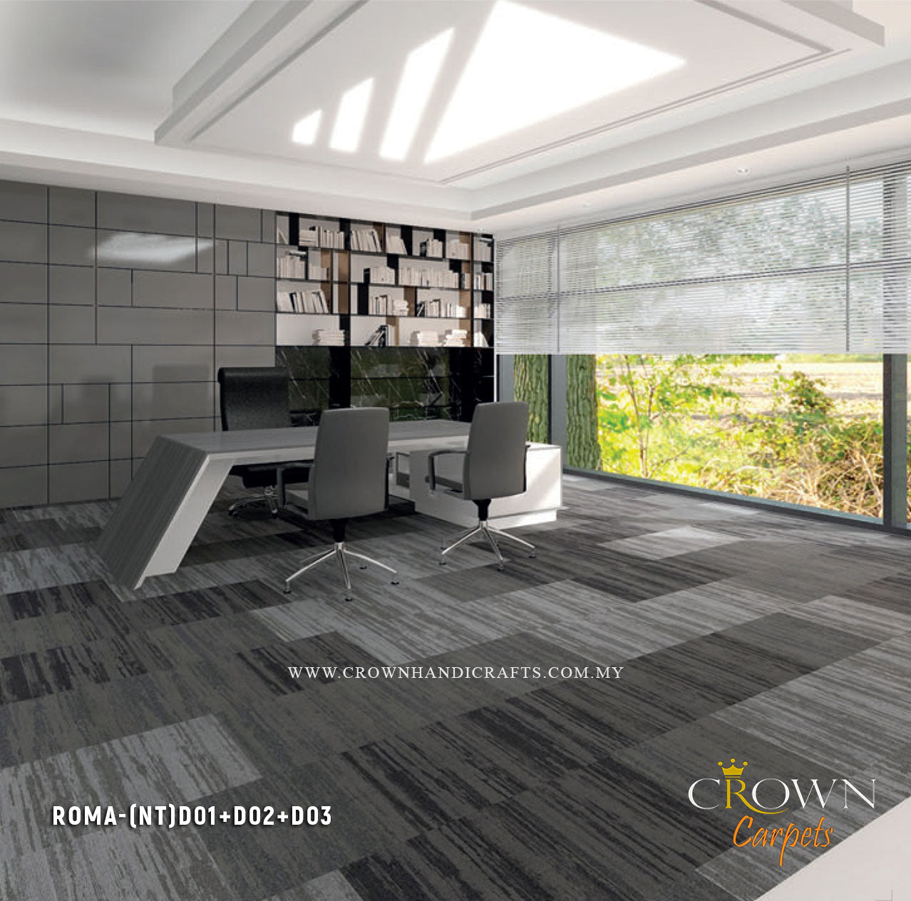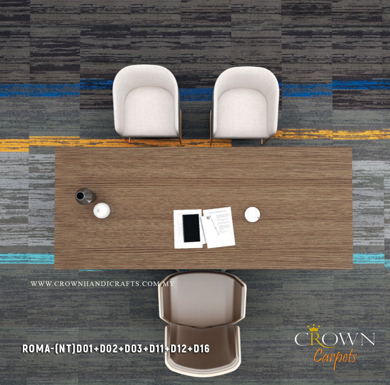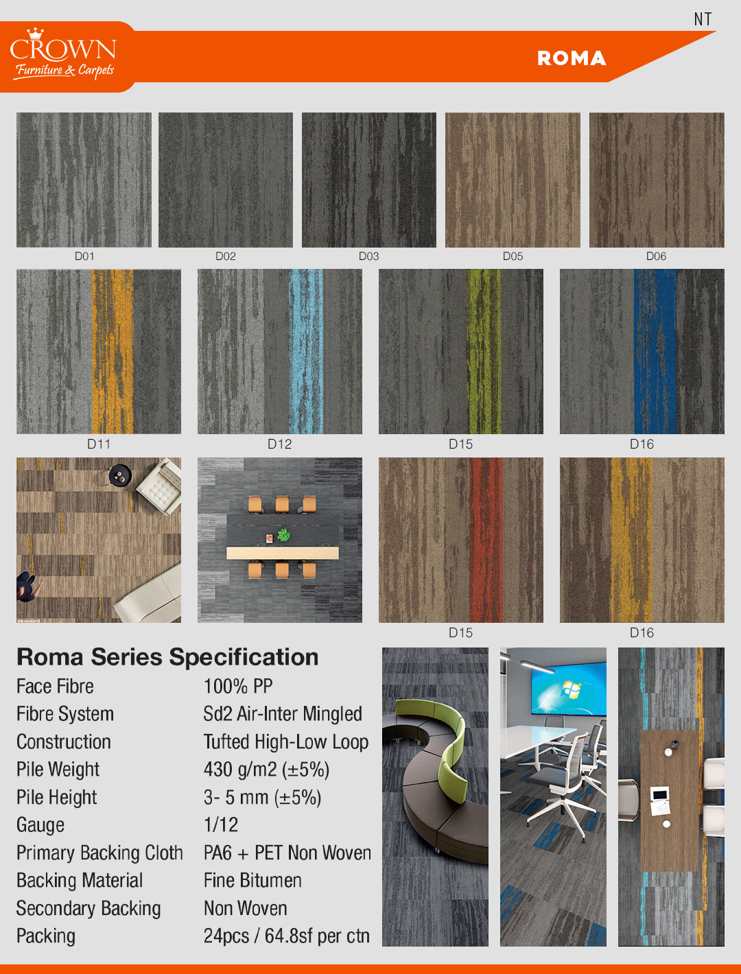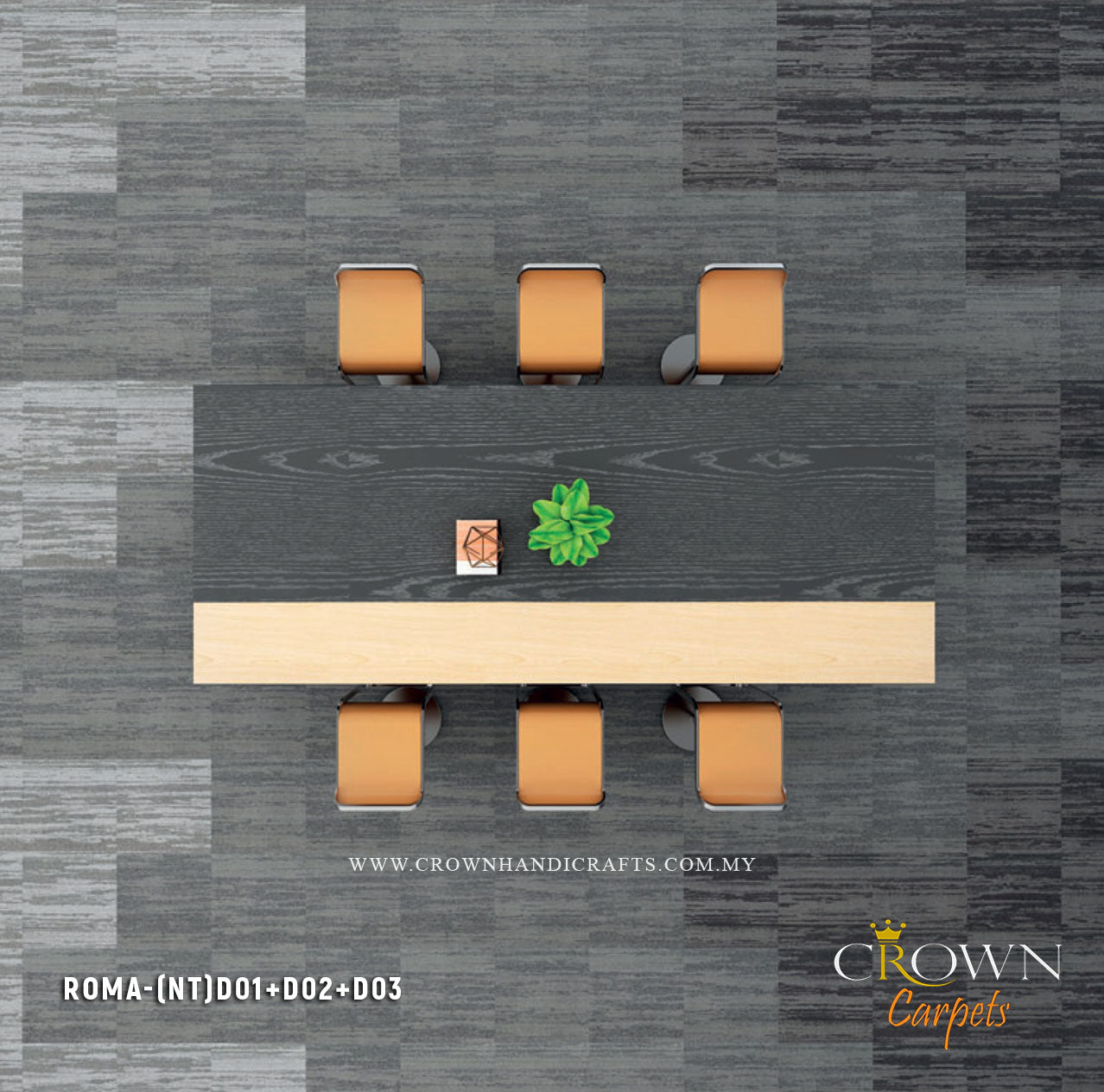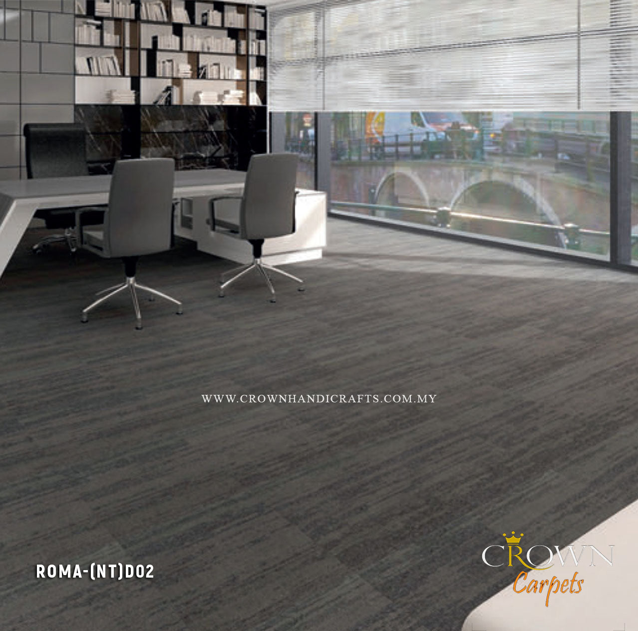Bring comfort and durability to your space with Roma Carpet Tiles, designed with a high-quality PP surface and eco-friendly backing for stability and sustainability.