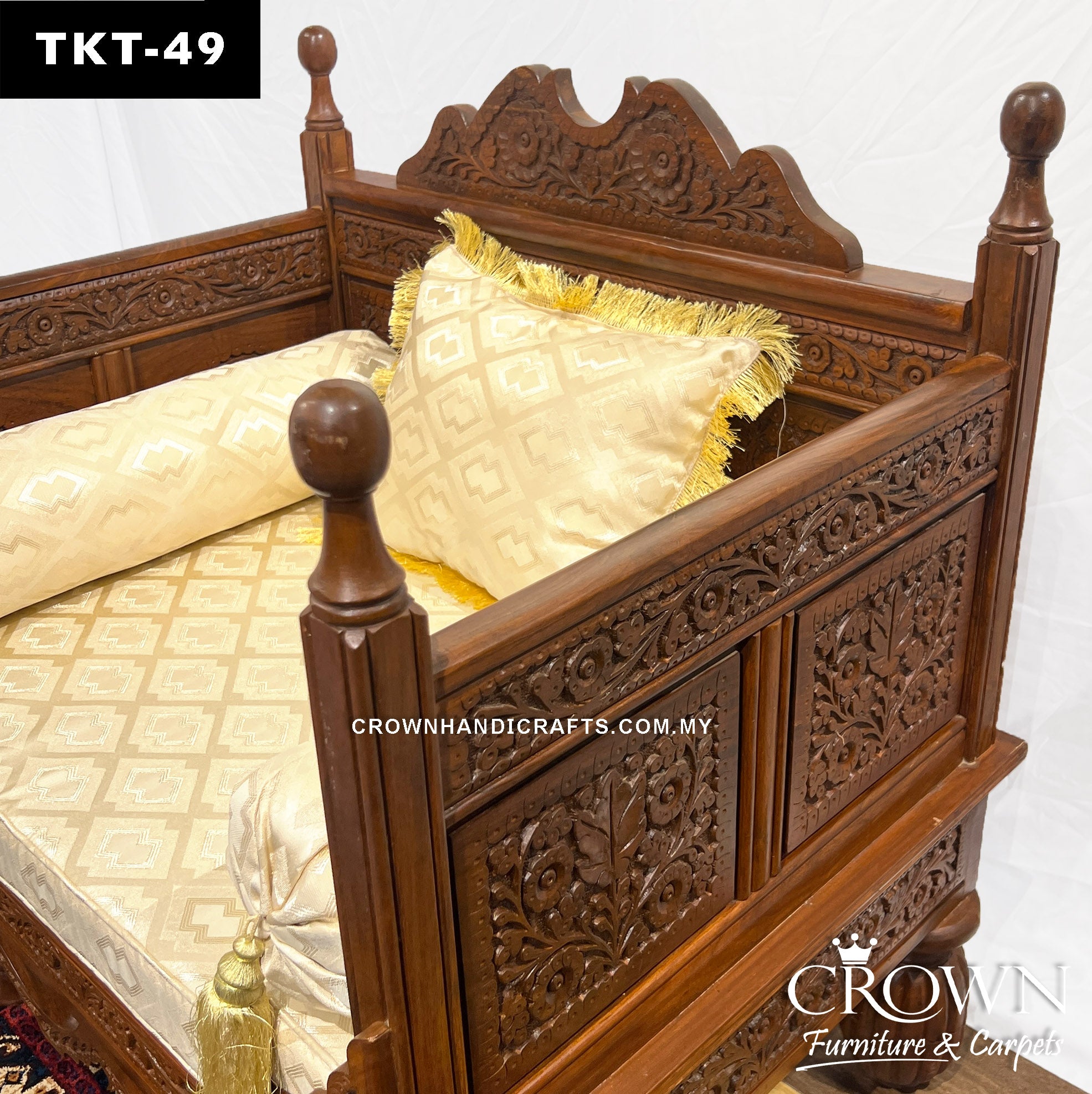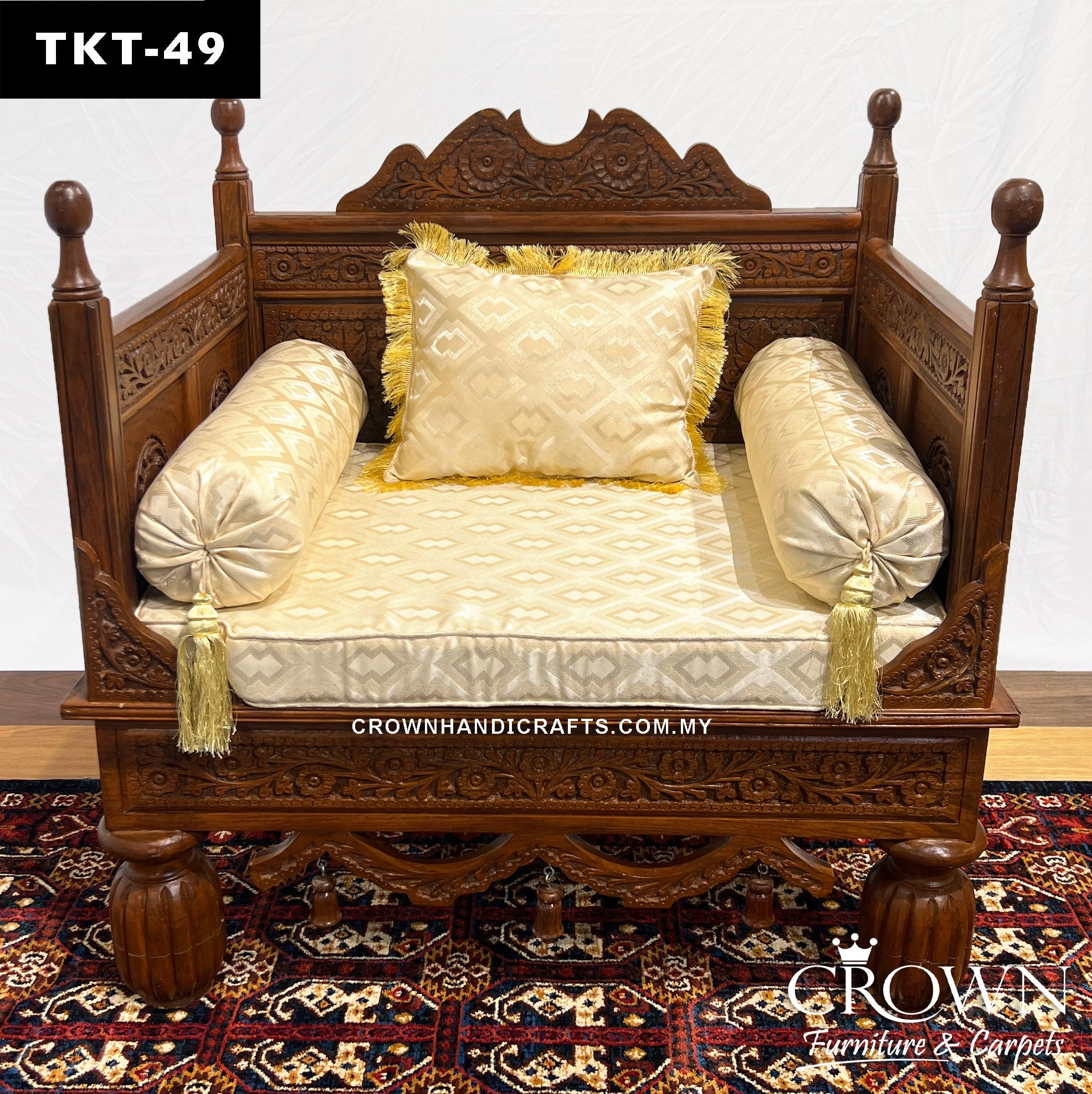 1 Seater Throne-Design Takht Couch, Solid Wood Hand-Carved Elegance for a Living Room Makeover | Added Comfort with Fabric Cushion, Bolsters and Pillows Wooden Sofa for Living Room | TKT-49 (L36 W27 H37 Inches)