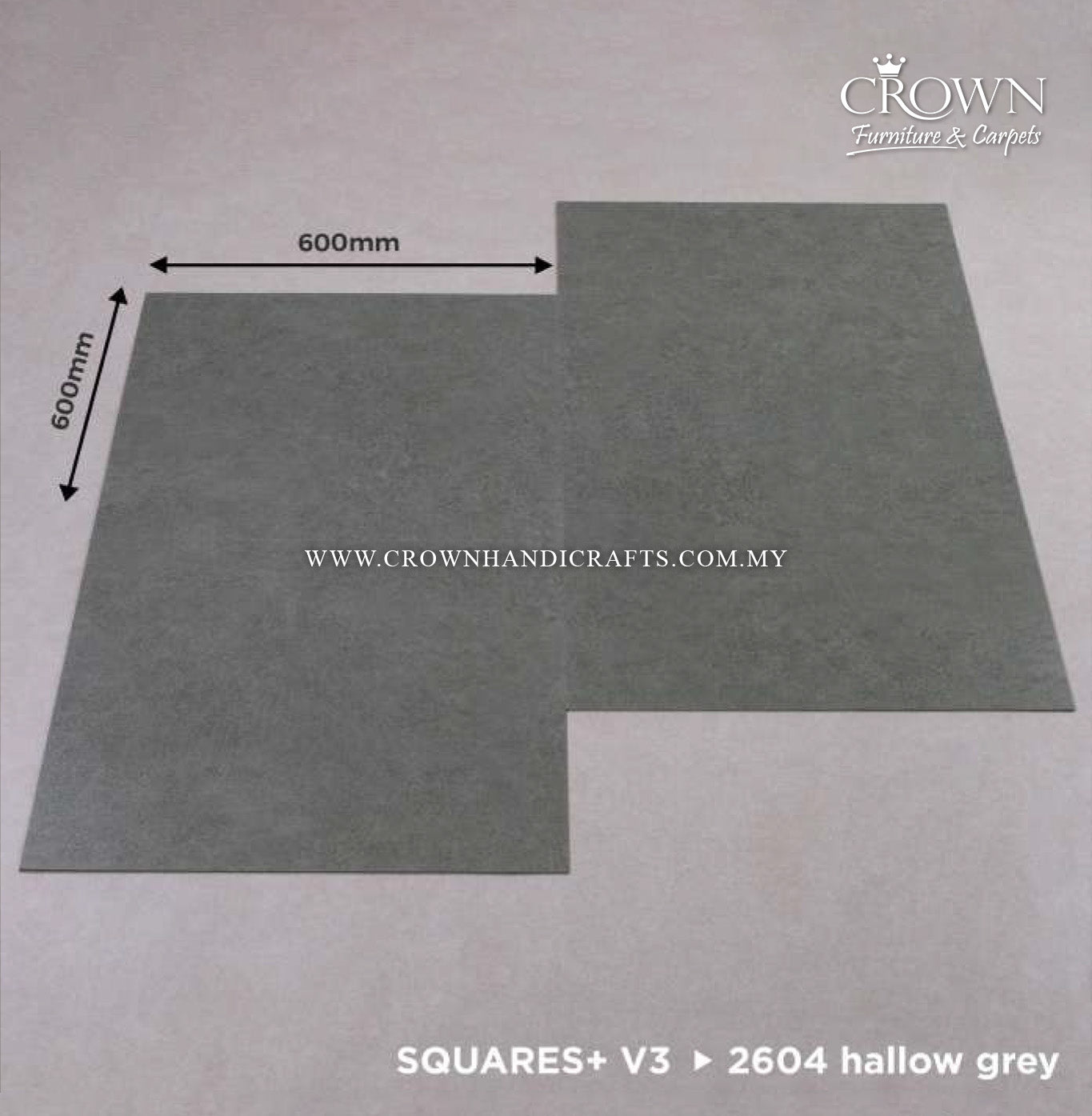 3MM KOREAN VINYL SQUARE PLUS 2604-HALLOW GREY (FP) | 600X600 | ECO-FRIENDLY VINYL FLOORING MALAYSIA | BOX 9PCS/34.8SF