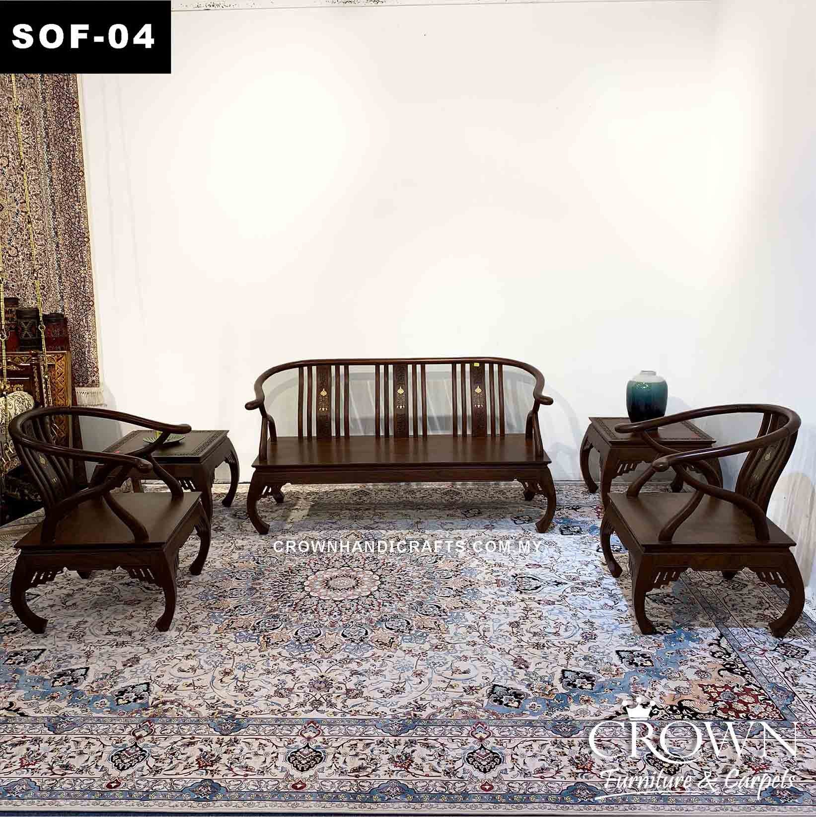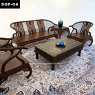 Monk Style Wooden Sofa Set 5-seater (3+1+1) with Solid Wood Base, Featured with Brass Inlay | SOF-04