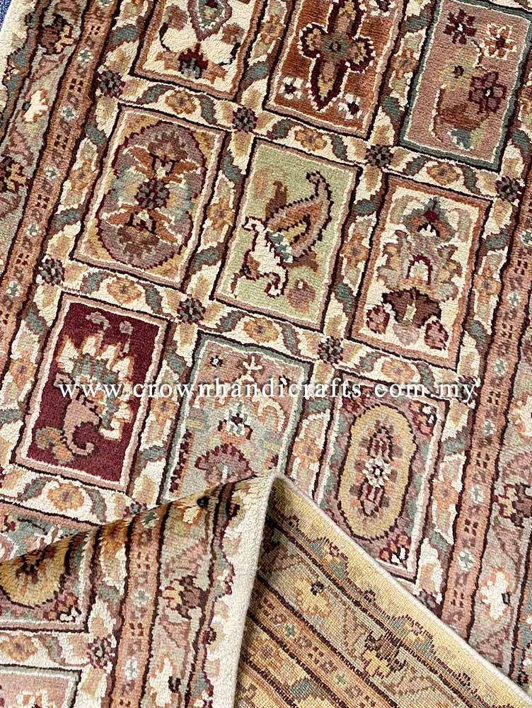 Any imperfection is a characteristic of handmade process. It appreciates the beauty of an art. Therefore Size of a carpet may not be accurate, please accept about 5-10% difference