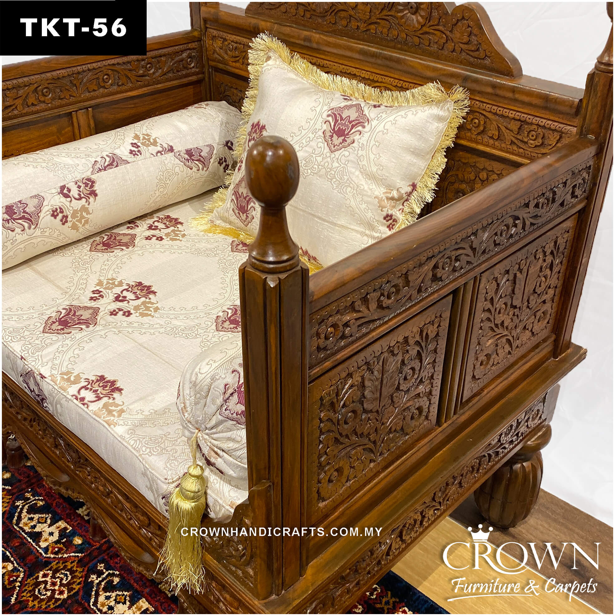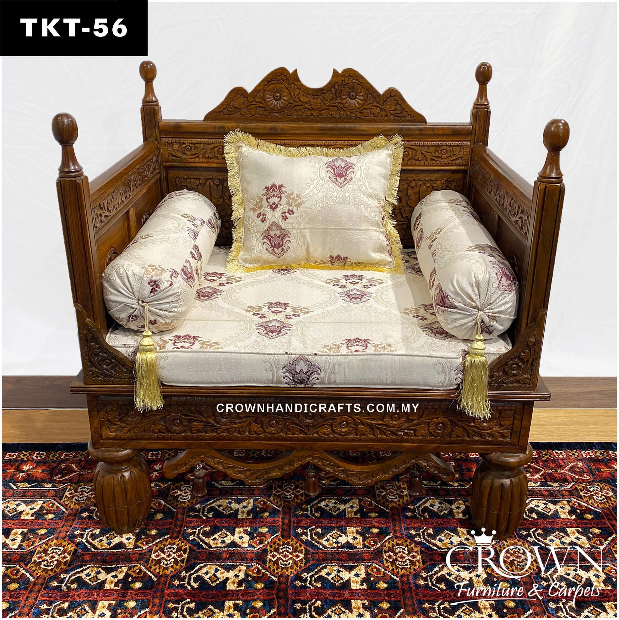 Artisan-Crafted Throne Sofa: Solid Wood Takht with Plush Pillows for Timeless Living Room Luxury | TKT-56 (L36 W27 H37 Inches)