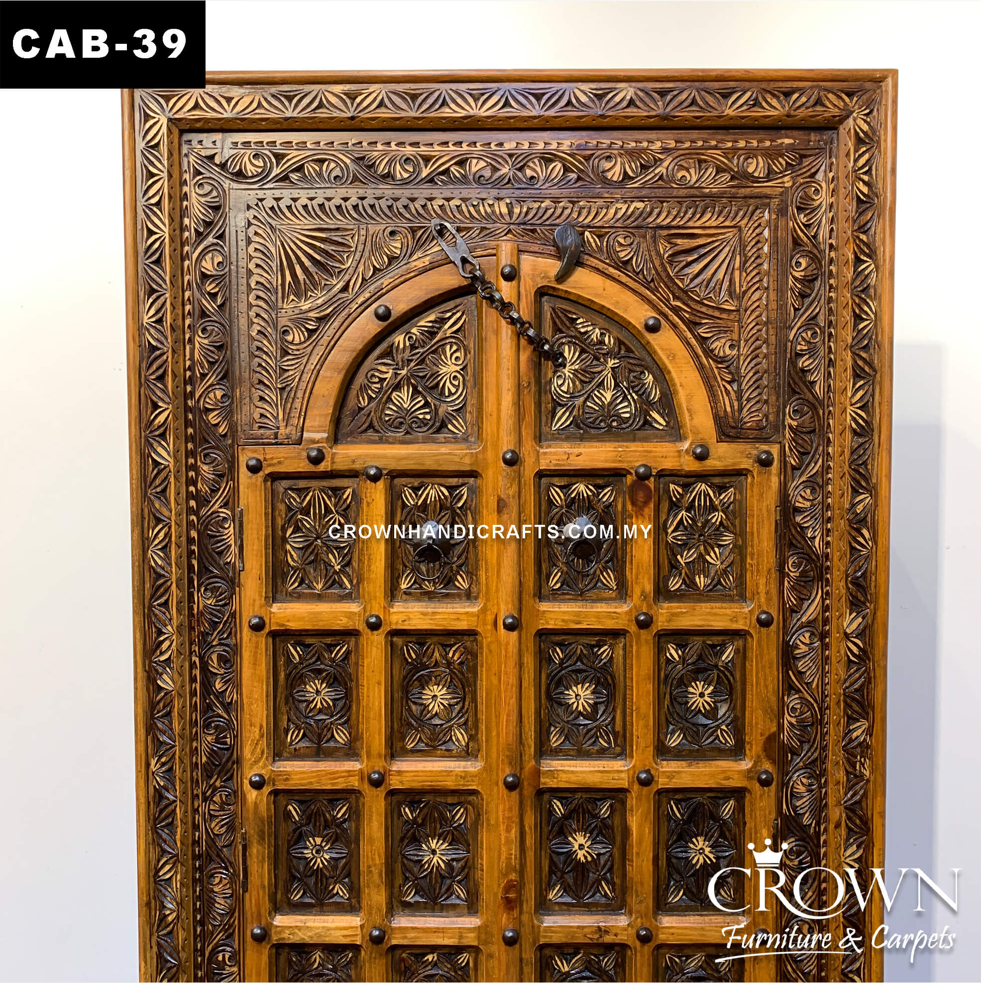 Almirah Cabinet Antique Indian Palace Haveli Style Door Accent Metal Ornament, Solid Wood Vintage Furniture Shop in Malaysia | CAB-39 (L36 W18 H72 Inches)