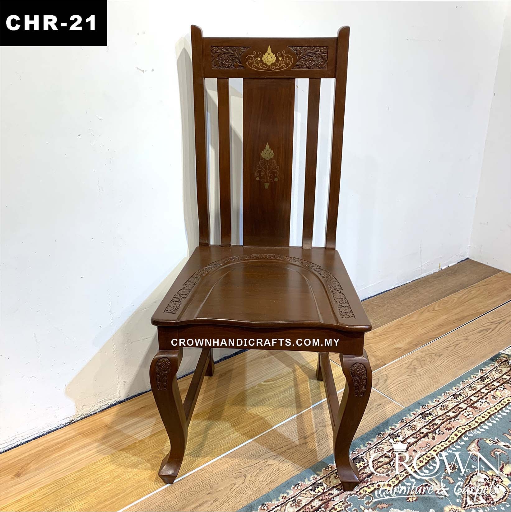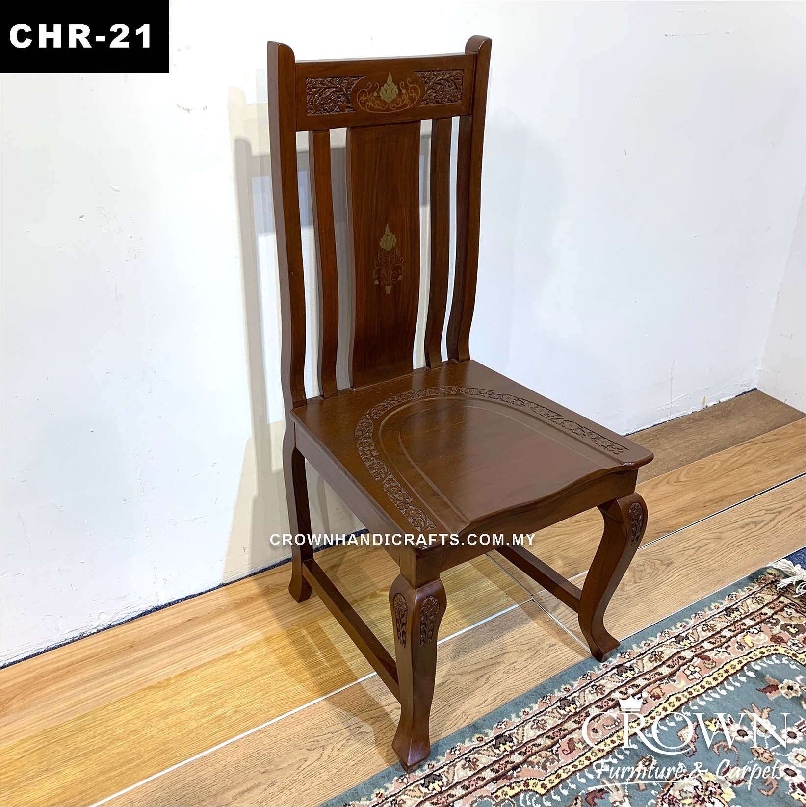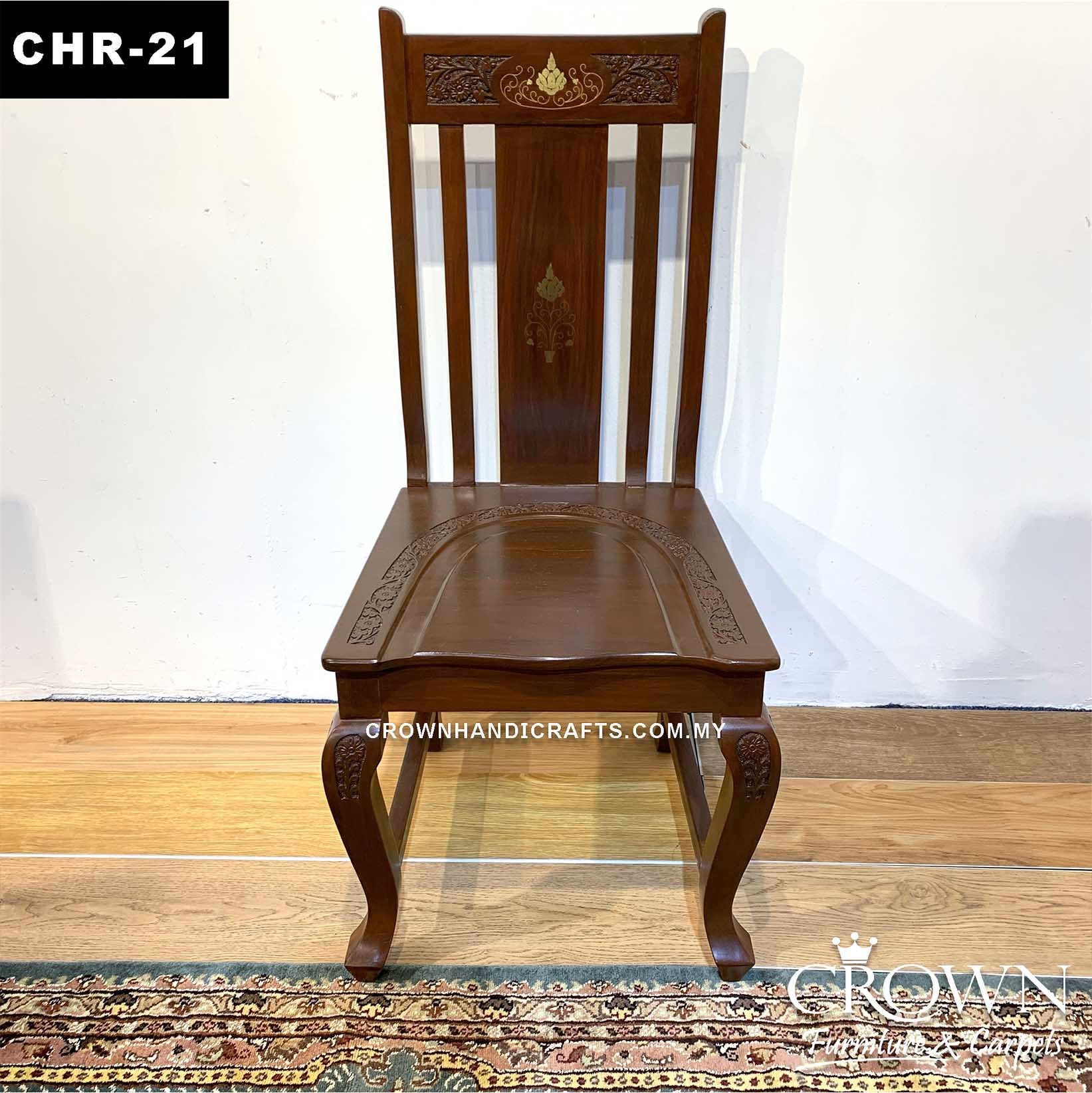 Solid Wood Dining Chair with Remarkable Hand Carving and Brass inlay | CHR-21 (L20 W20 H42 Inches)