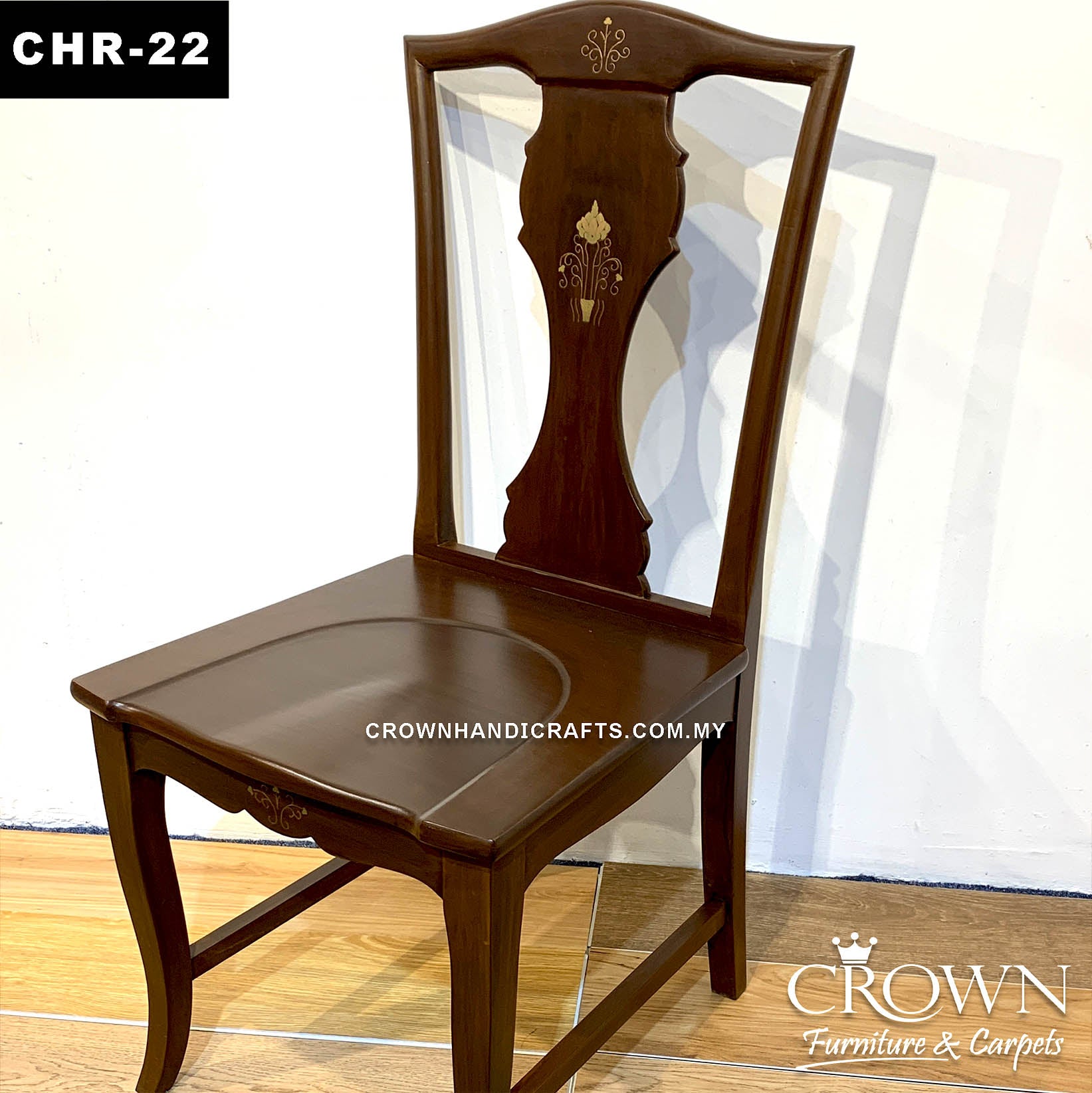Solid Wood Dining Chair with Tasteful Brass inlay | CHR-22 (L19 W19 H41 Inches)