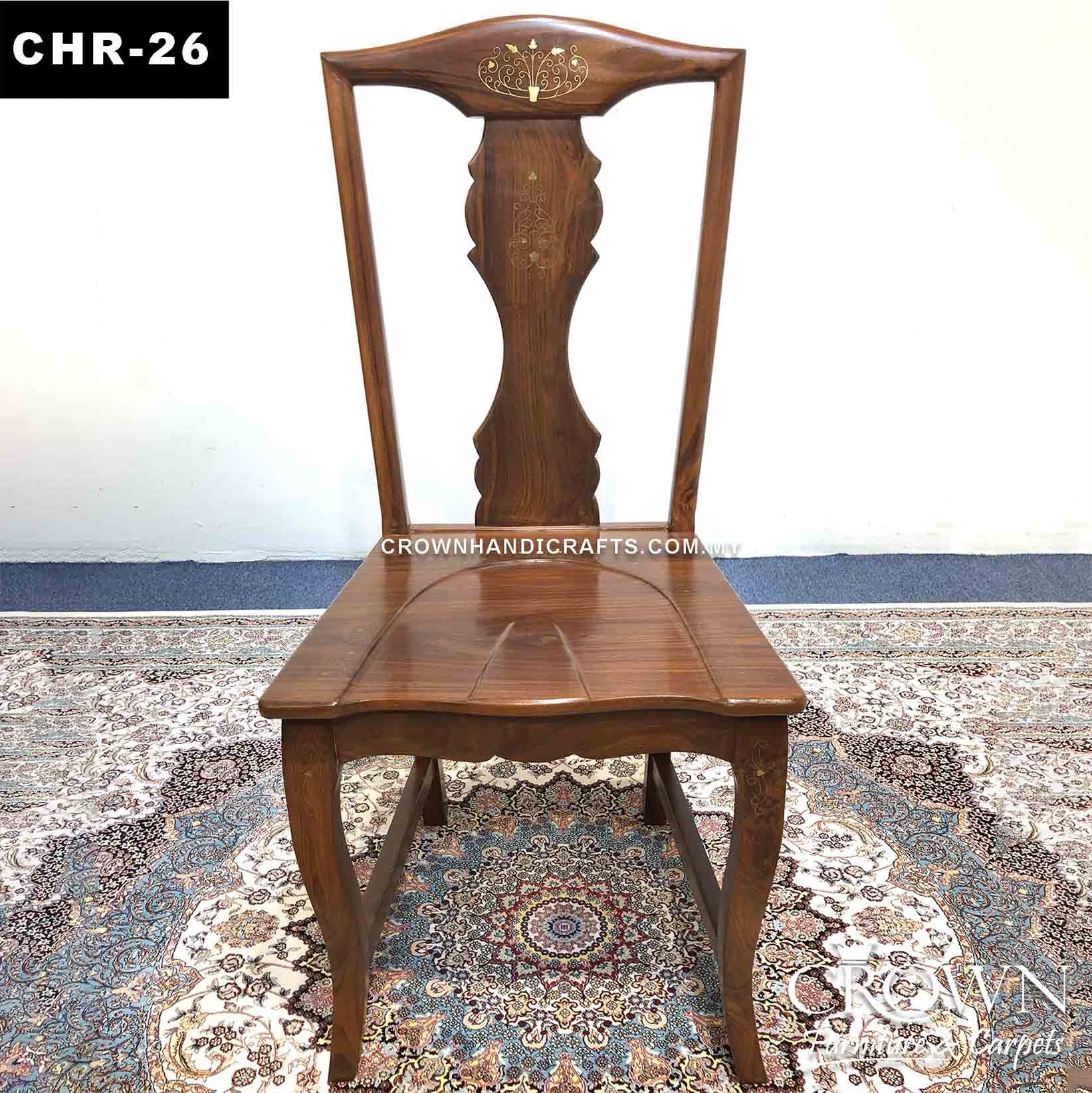 Solid Wood Dining Chair with Tasteful Brass inlay | CHR-26 (L19.5 W19 H41.5 Inches)