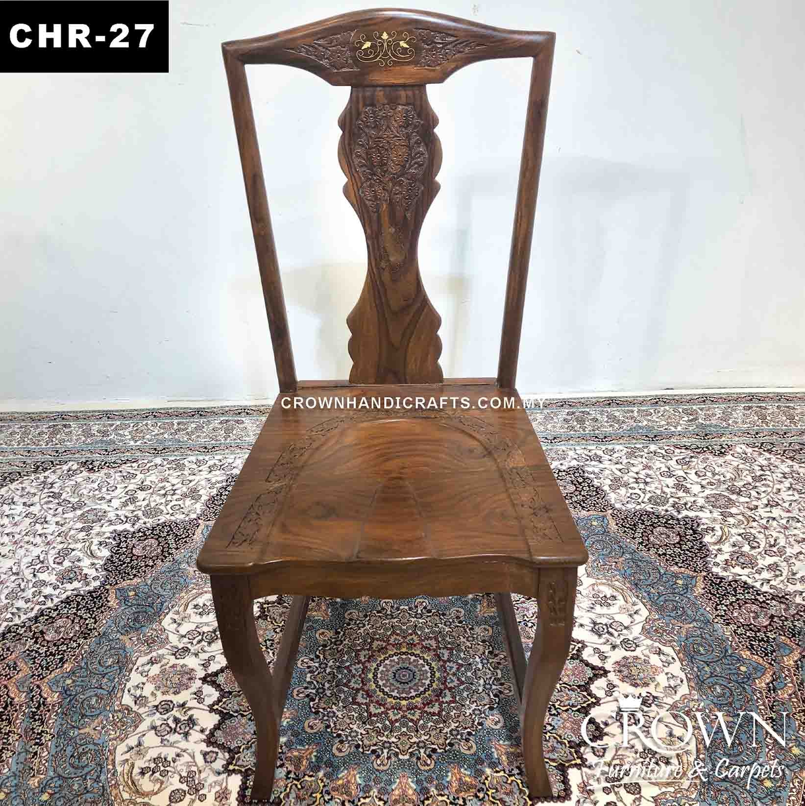 Solid Wood Dining Chair with Remarkable Hand Carving and Brass inlay | CHR-27 (L19 W19 H41.5 Inches)