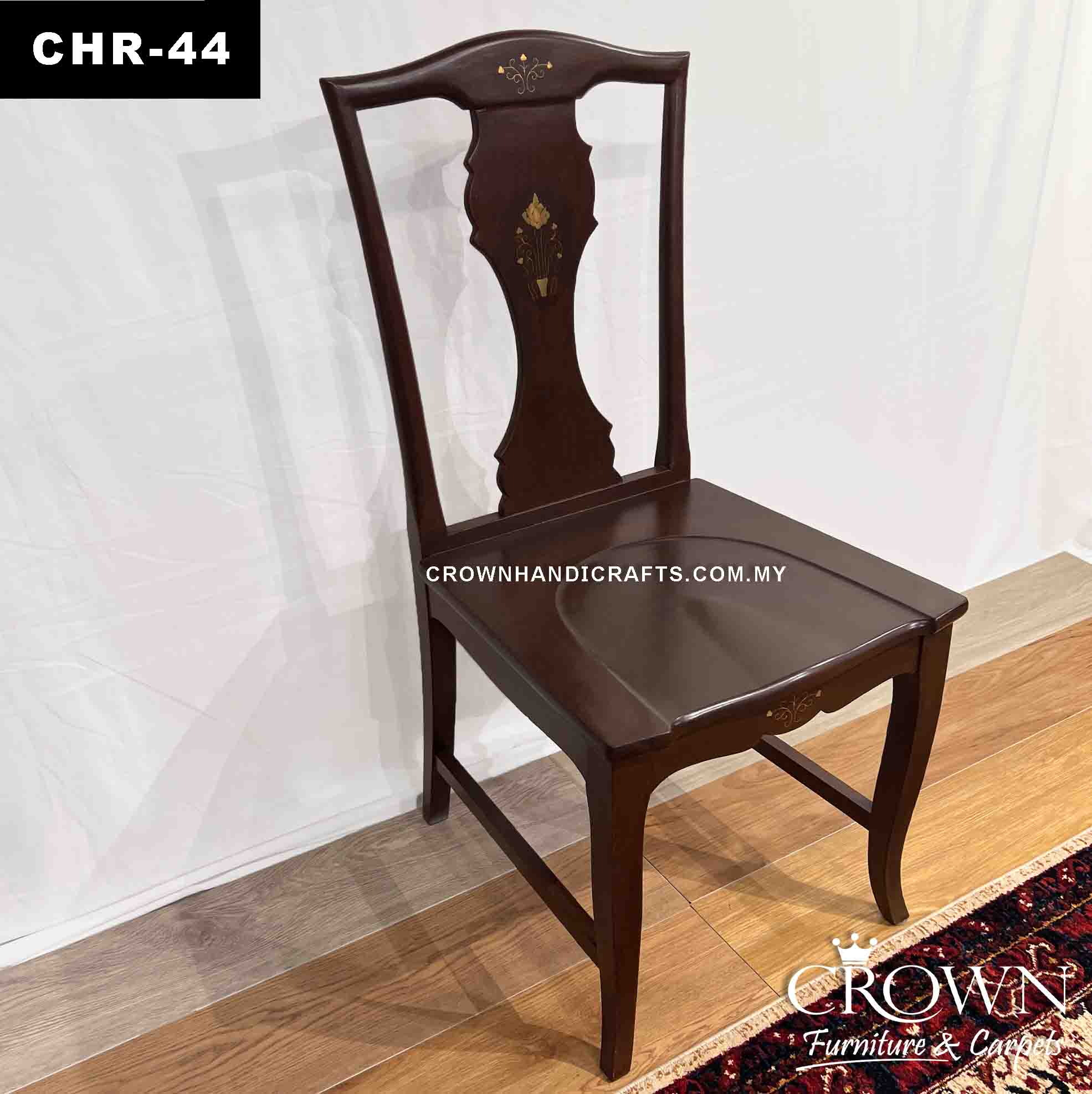 Solid Wood Dining Chair with Tasteful Brass inlay | CHR-44 (L19 W19 H41.5 Inches)