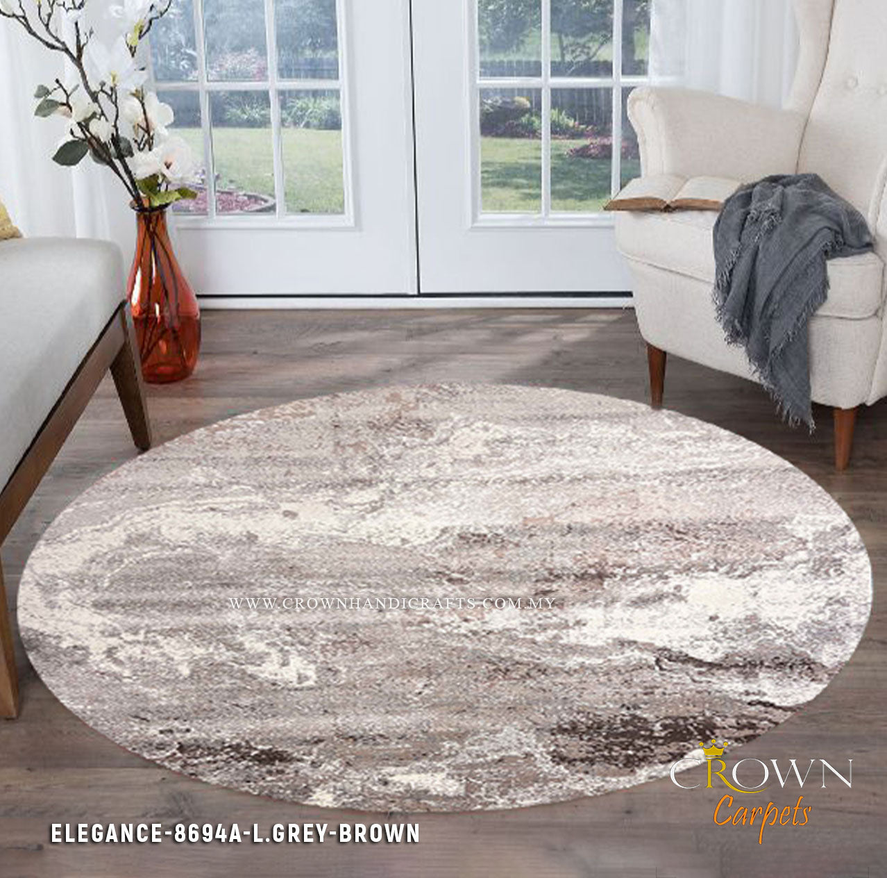 Transform Your Space: Sleek Modern Carpets & Rugs for Timeless Elegance | Elegance 8694A Round L.Grey Brown