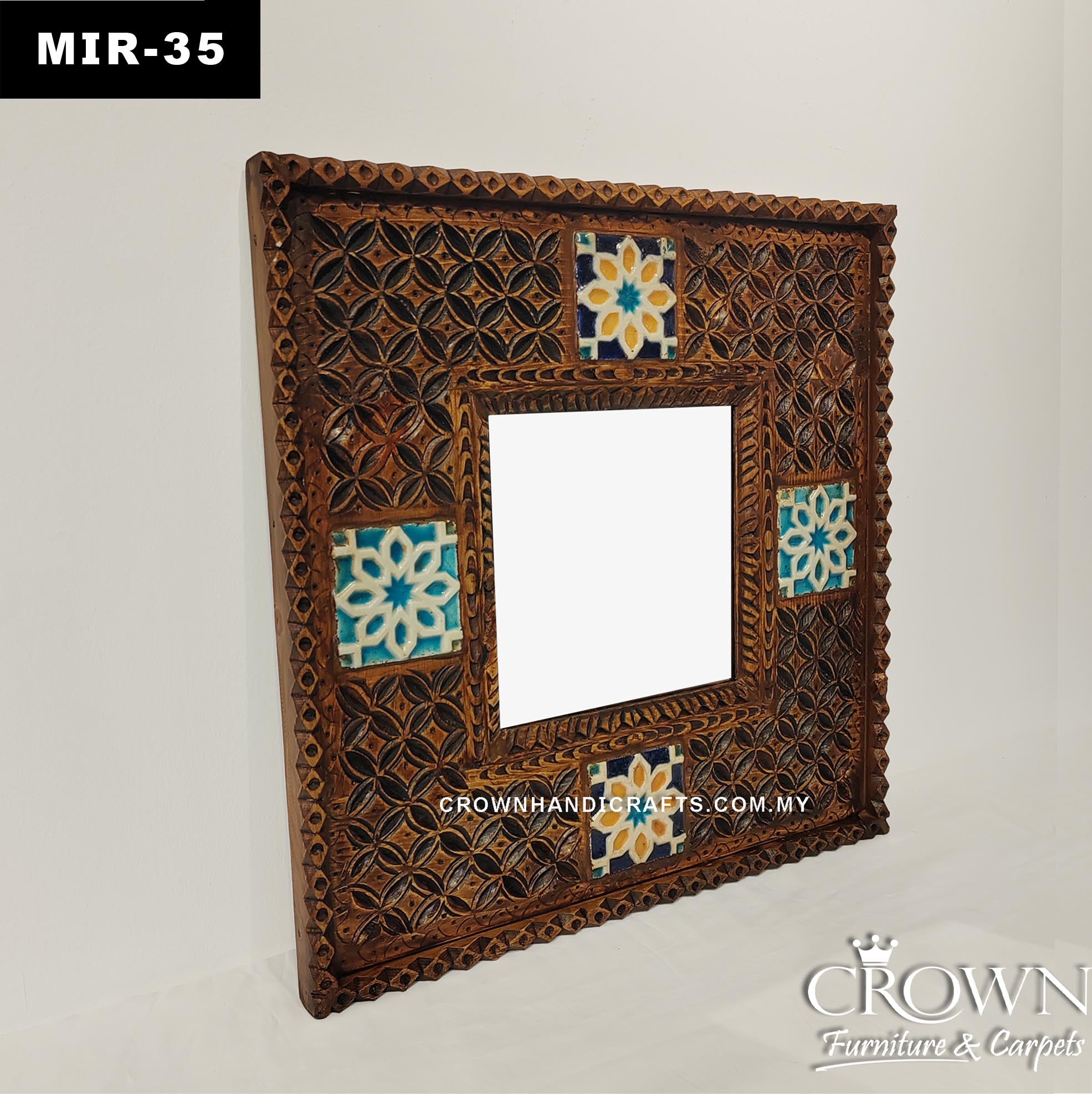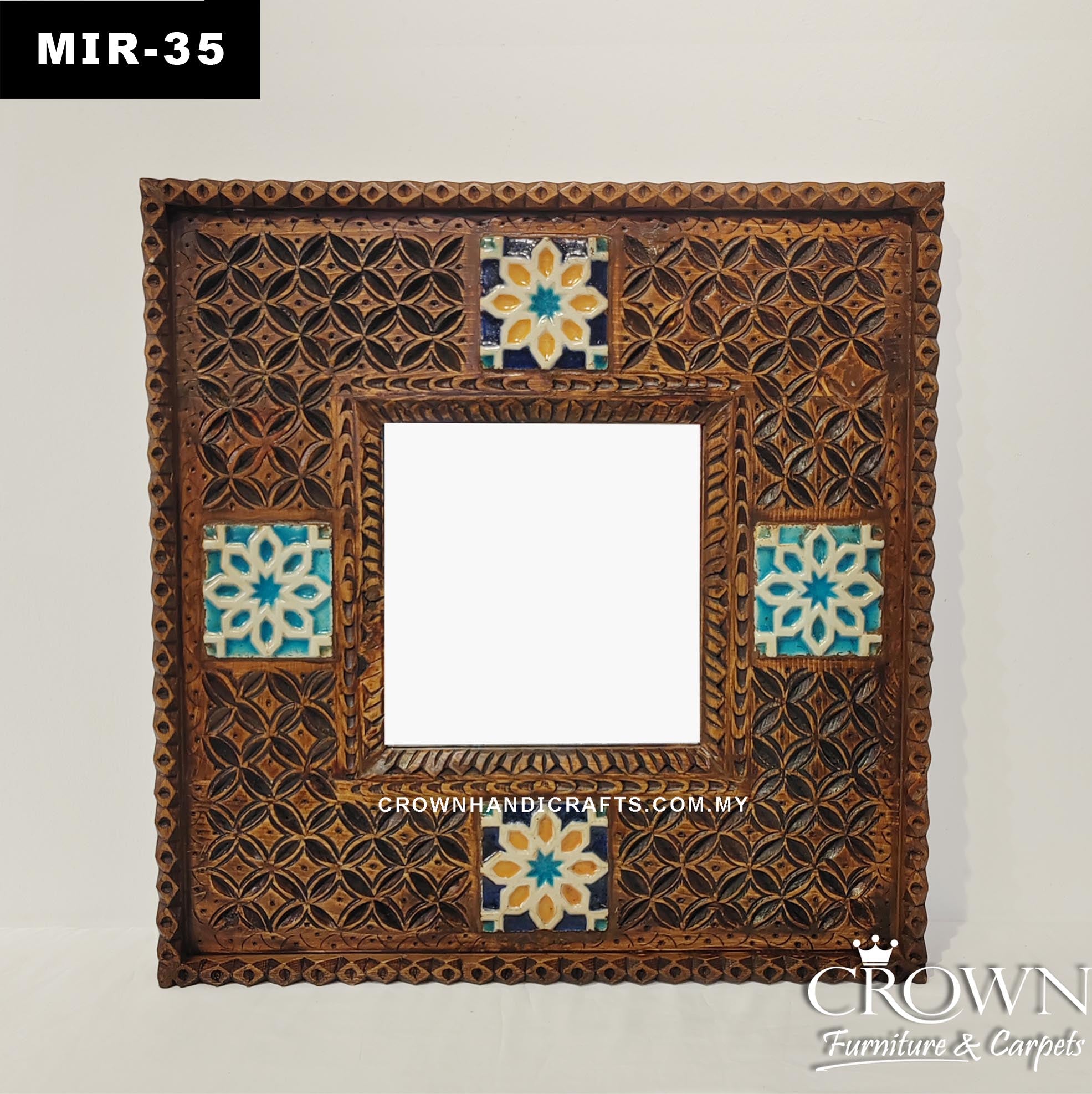 Moroccan Heritage Carved Wood Mirror Frame with Star Geometry | MIR-33 (L24 W1.5 H24 Inches)