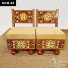 Elegant Pair of Low Height Royal Chairs – Featuring Traditional Rajasthani Hand Painting | CHR-48 (L18 W18.5 H29.5 Inches)