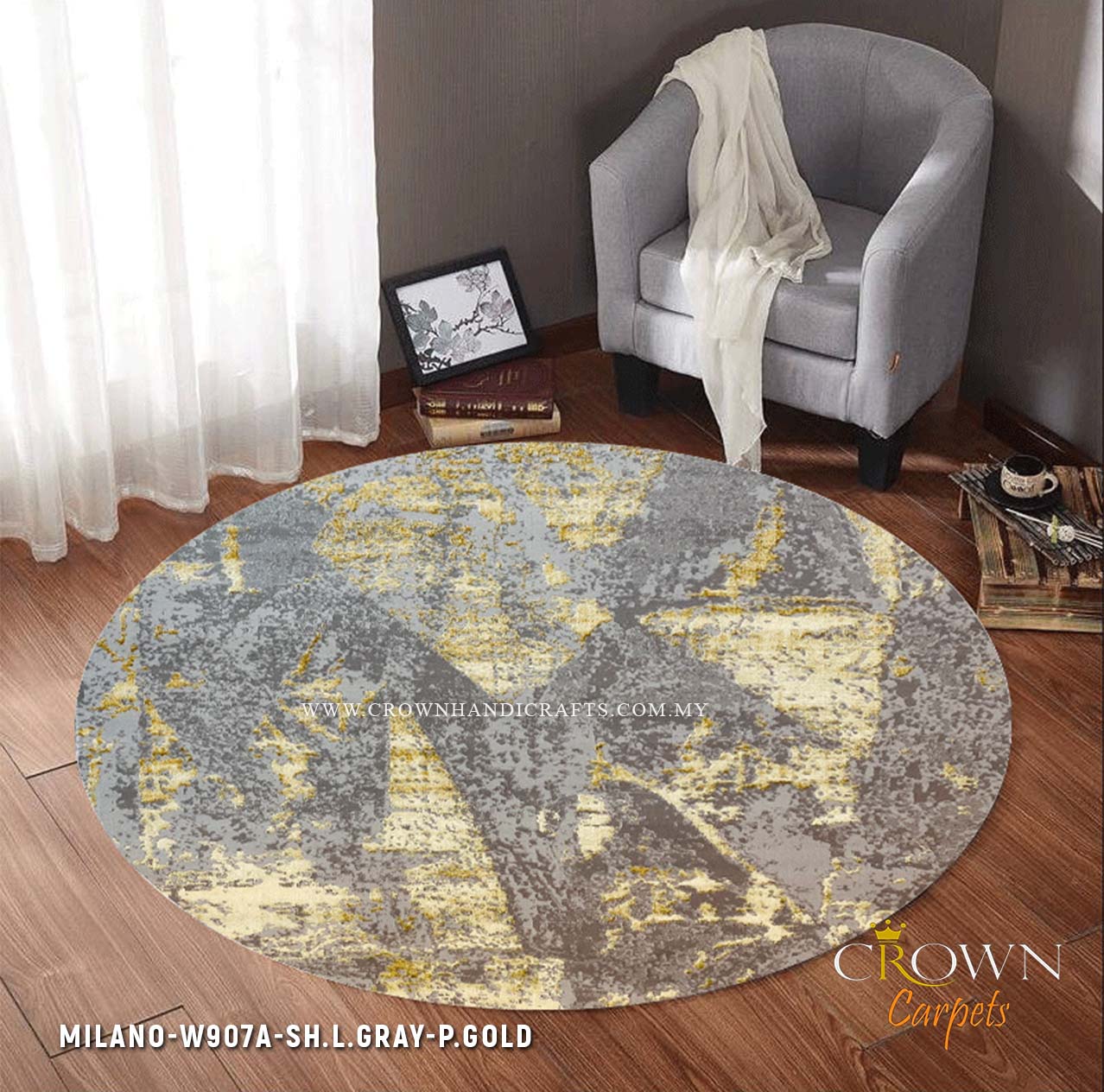 Featured Modern Round Design Carpets Rugs for your Home | Milano W907A-SH.L.Gray P.Gold
