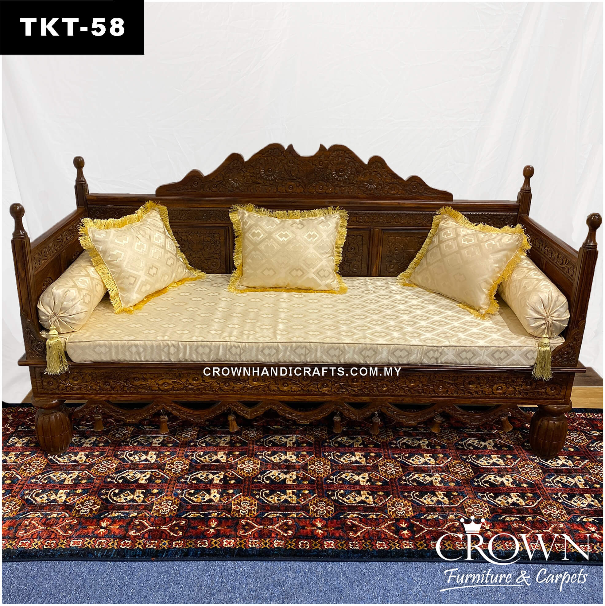 Hand-Carved 3-Seater Throne Sofa: Solid Wood Takht with Plush Cushions & Pillows | Transform Your Living Room in Regal Comfort & Elegance | TKT-58 (L72 W27 H40 Inches)