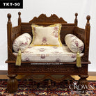 Transform your living space with the 1-Seater Throne-Design Takht Couch, a timeless piece crafted from solid wood with intricate hand-carved detailing. This elegant sofa offers enhanced comfort with its fabric cushions, bolsters, and pillows, creating a cozy and luxurious seating experience. Ideal for a living room makeover, this wooden masterpiece blends regal aesthetics with modern functionality, making it a perfect addition to your home decor.