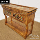 Hand-Painted Rajasthan Thar Artisan Console Table – Antique Heritage Style Solid Wood with 2 Drawers | CON 48 (L47.5 W16.5 H35 Inches)