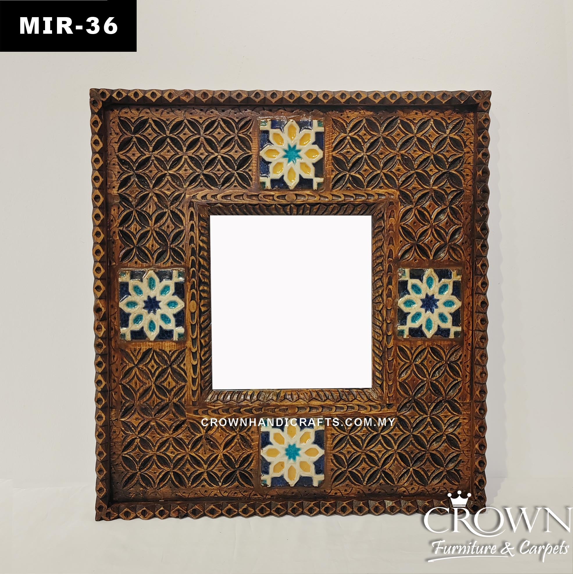 Heritage Moroccan Pattern Handcrafted Wooden Mirror Frame | MIR-36 (L24 W1.5 H24 Inches)