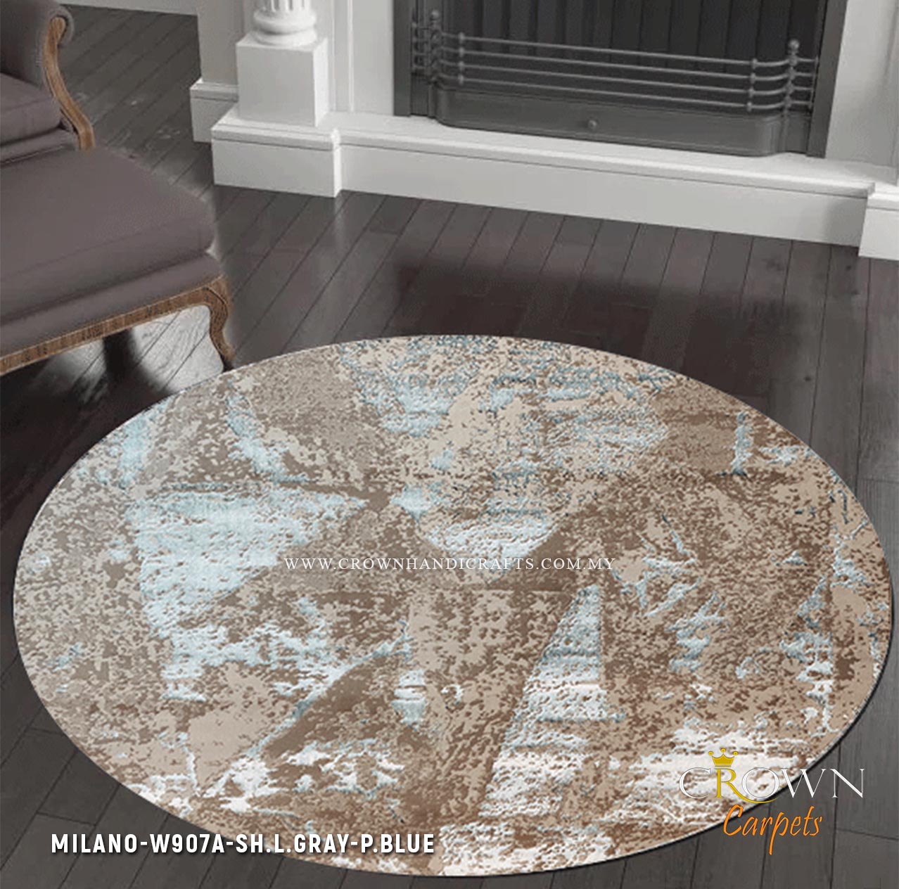 High-End Designer Carpets Round Modern Minimalist Abstract Rugs Shop | Milano W907A-SH.L.GRAY P.BLUE