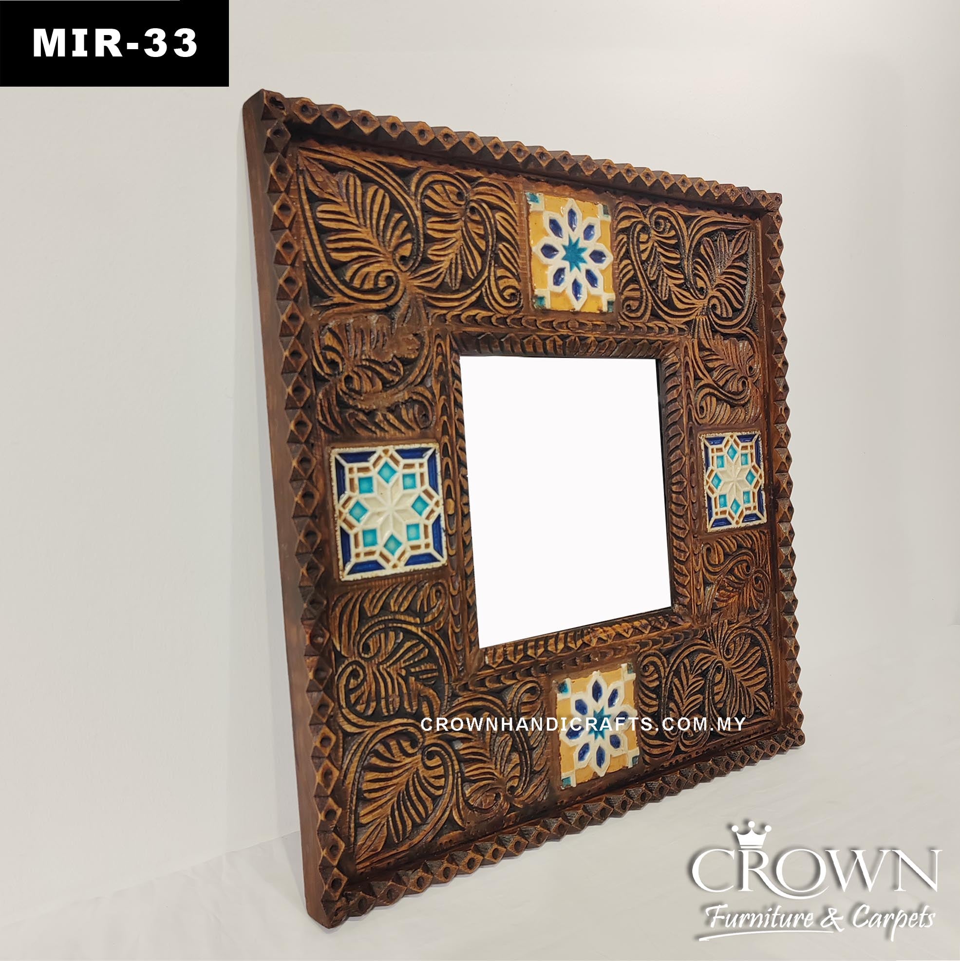 Moroccan Heritage Carved Wood Mirror Frame with Star Geometry | MIR-33 (L24 W1.5 H24 Inches)