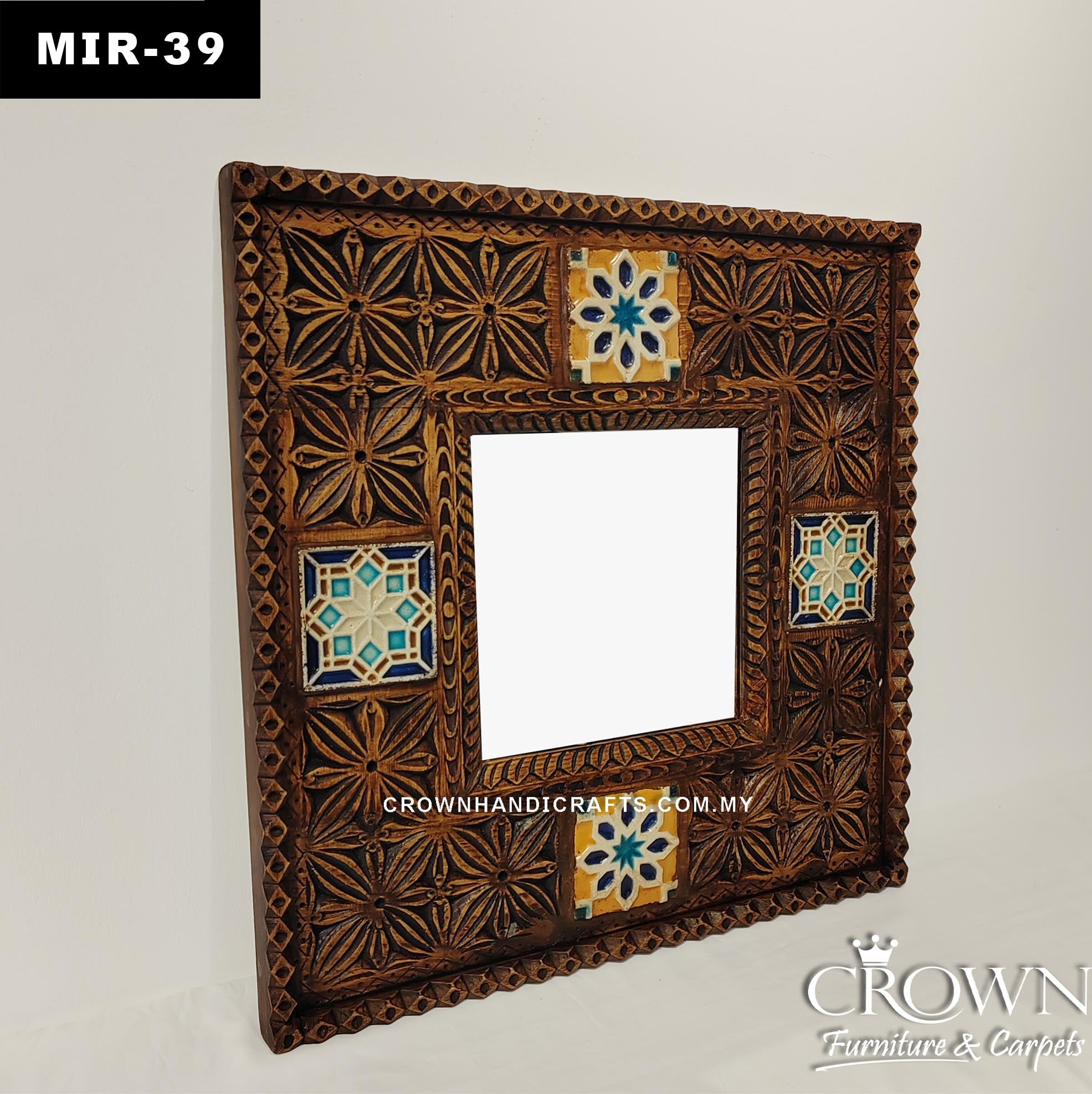 Moroccan Heritage Style Geometric Wooden Mirror Frame | MIR-39 (L24 W1.5 H24 Inches)