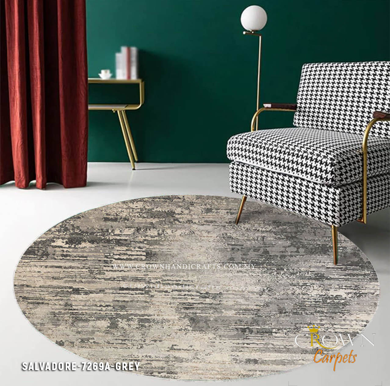 Step into our carpet shop in Kuala Lumpur and explore the allure of modern luxury with the Salvadore Modern Round Rug. Our showroom is a haven for those seeking the perfect addition to their bedroom or living room.