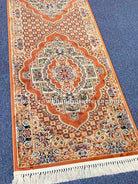 The Semerkant Persian corridor carpet is a timeless collection that never goes out of style. With intricate patterns and designs paired with luxurious color combinations, this carpet exudes elegance. Its billiard table-smooth feel enhances the sense of comfort, while the authentic Persian craftsmanship guarantees the highest quality. Best of all, it offers this unmatched luxury at an affordable price, making it the perfect addition to elevate any room.