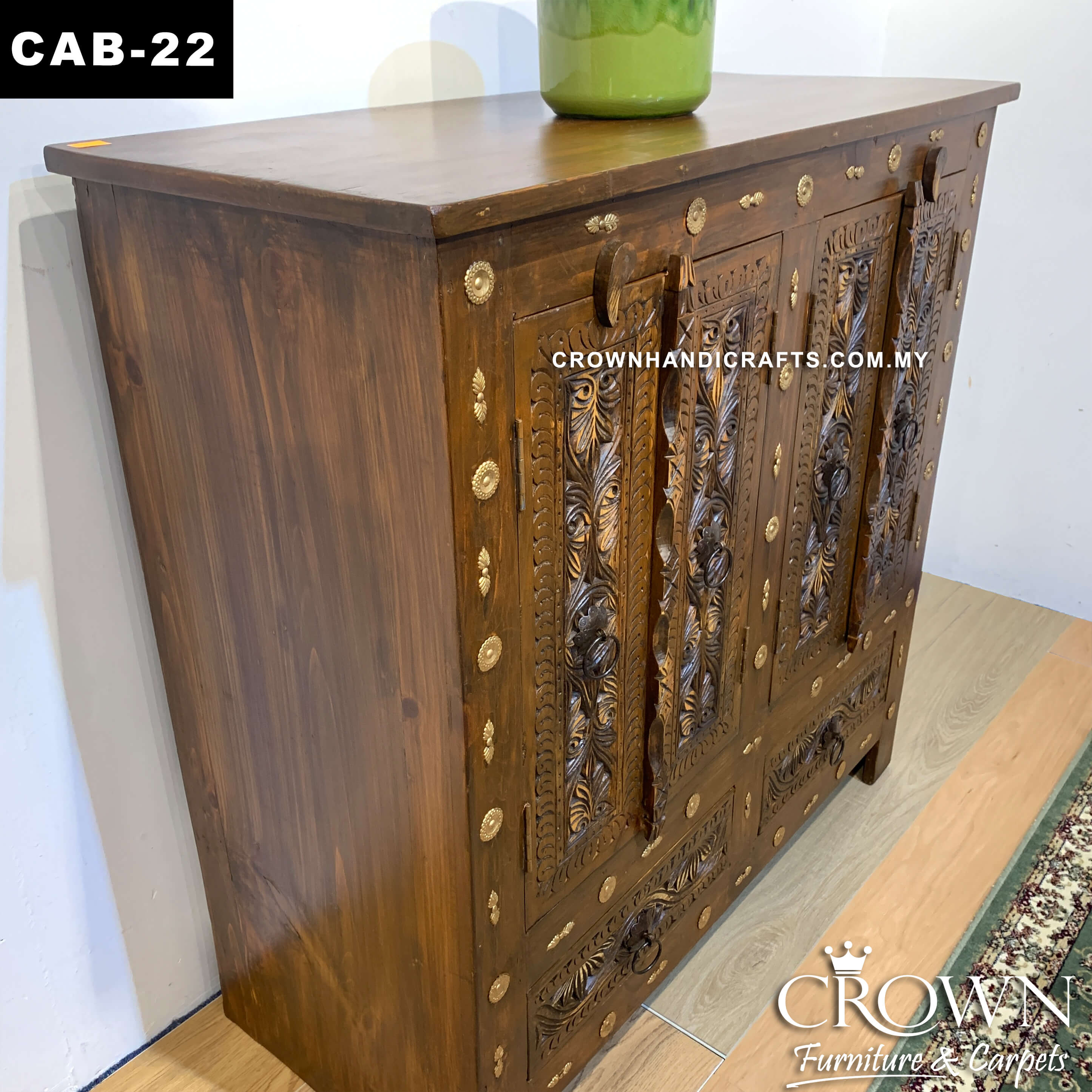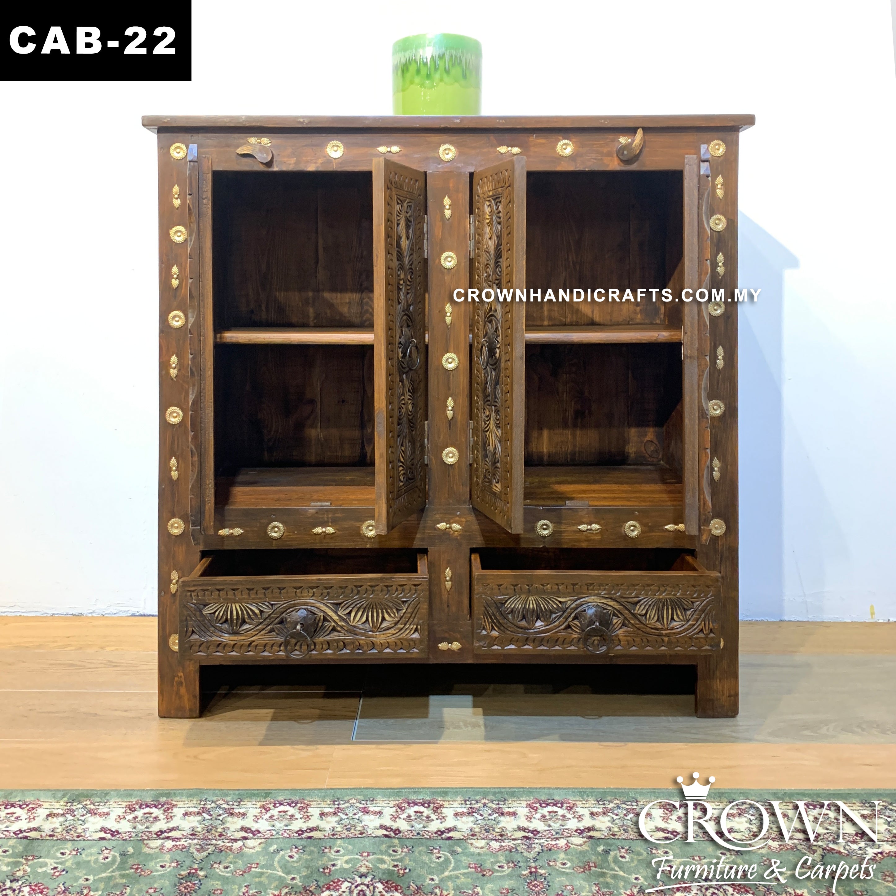 Solid Wood Antique Style Cabinet with 2 Doors 2 Drawers Brass Accents, Ideal Living Room Furniture Teak Cabinet in Kuala Lumpur | CAB-22 (L42 W18 H42 Inches)