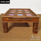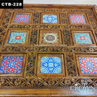 Square Solid Wood Coffee Table – Bohemian Moroccan Hand-Painted Ceramic Tile Accent with Exquisite Hand Carving for Vibrant Living Room | CTB-228 (L38.5 W38.5 H19.5 Inches)