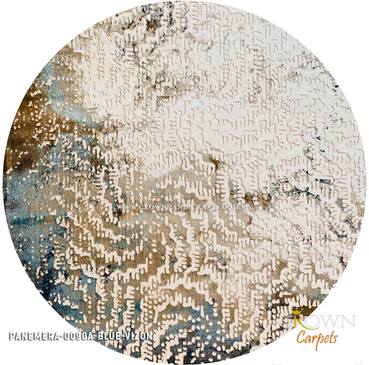 Trendy Living Room Round Carpet for Modern Sofa Interior | Panemera 0090A Blue Vizon