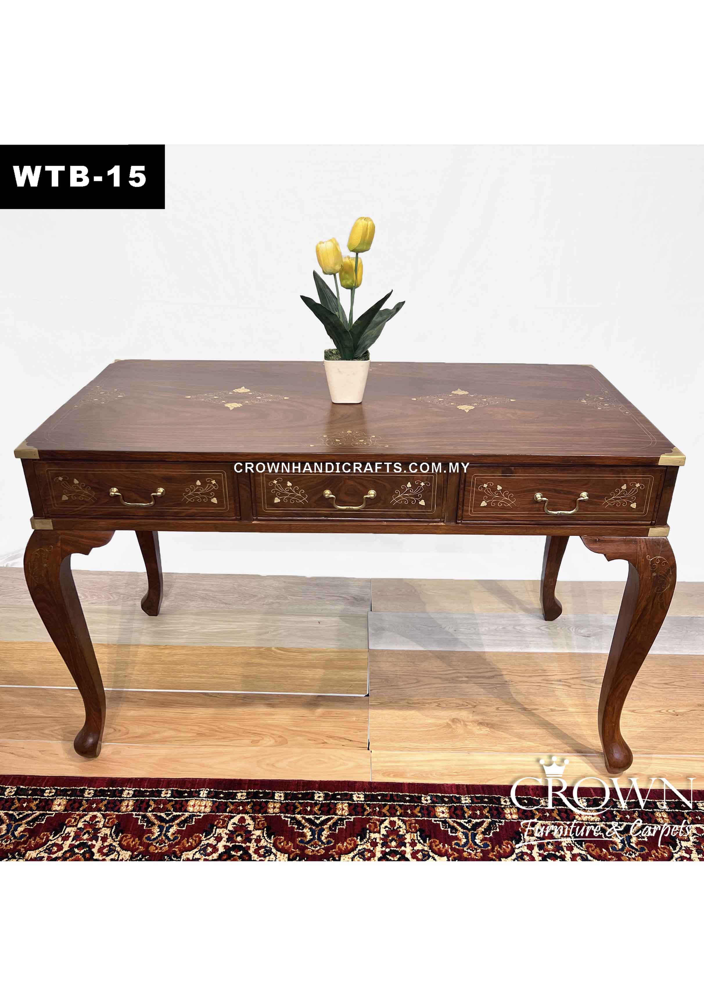 Solid Wood Study Table 4ft, Victorian Inspired Legs along with 3 Drawers | Exquisite Craft of Brass Inlay for Premium Touch | Office Table Solid Wood | WTB-15 (L47.5 W23.7 H30.5 Inches)